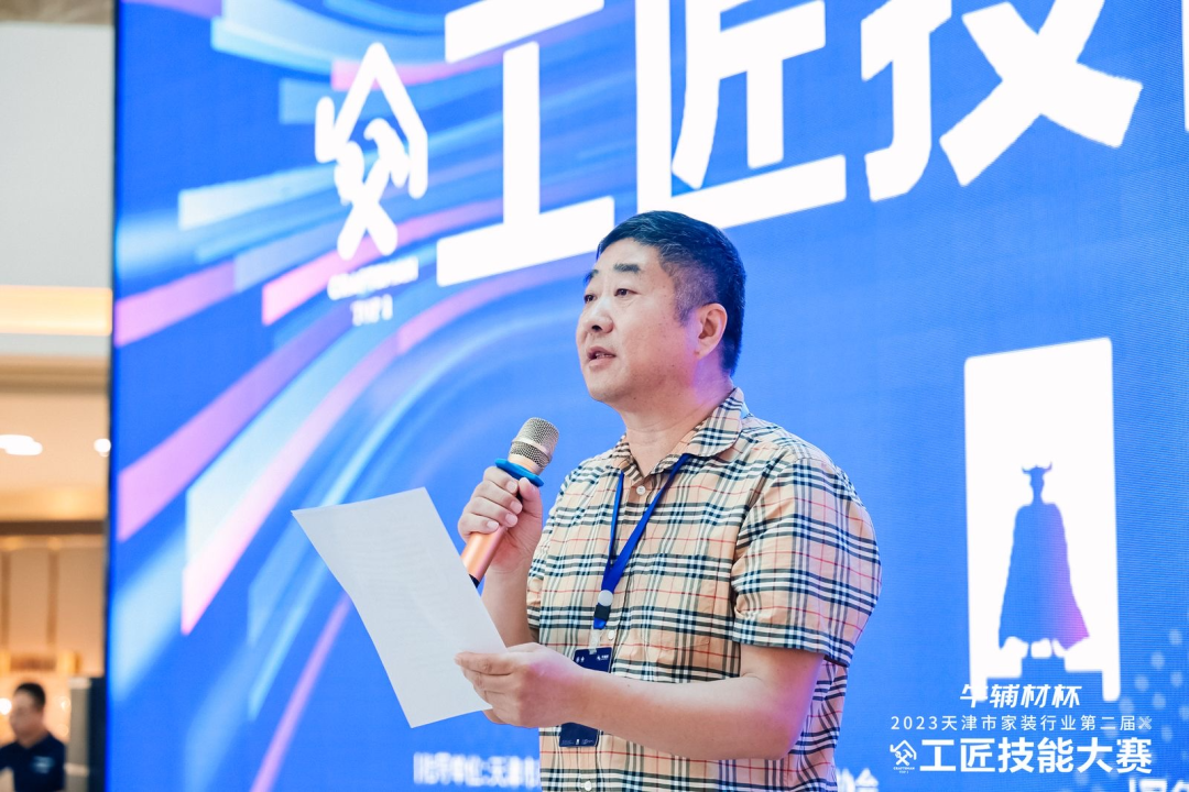 天津市家装行业第二届工匠技能大赛由牛辅材全程冠名,牛辅材为各大工种比赛提供支持,董事长谷坤远作为冠名方代表,在活动现场发表讲话。